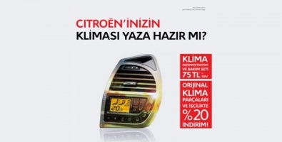 Kampanya kapsamında Citroën Yetkili Servislerine gelen kullanıcılar, klima dezenfektasyon ve bakım setine çok uygun bir fiyata sahip olurken, orijinal klima parçaları ve işçilikte indirim fırsatlarından yararlanacaklar. 12-31 Mayıs tarihleri arasında Citroën Yetkili Servisleri’nde geçerli olacak kampanya ile Klima dezenfektasyon ve bakım seti işçilik dahil 75.00 TL’lik avantajlı fiyatıyla satışa sunulacak. Ayrıca orijinal klima parçaları ve işçilikte de %20 oranında indirim uygulanacak.