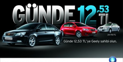 Geely, sunduğu cazip fiyatlı modellerle, % 10 gibi düşük bir peşinat alımı ve hızlı kredi kullanım imkanı ile en kolay satın alınan otomobil olmayı hedefliyor