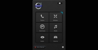 Ana menü yapısı Volvo uzaktan kumandalarındakine benzer şekilde butonlar halinde sıralanan uygulamada, ekranın sol alt kısmında Volvo OtoLine acil arama butonu ve sağ üstte ise Volvo'dan güncel haberlerin iletildiği mesajlarınız butonu bulunuyor.