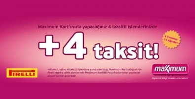 Üstelik Maximum Kart sahibi İş Bankası müşterileri, kampanyaya dahil Pirelli bayilerinden lastik alımlarında 4 taksite özel +4 taksit olanağından da faydalanabiliyor.
