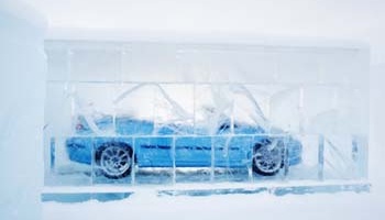 Saab, her mevsim kullanılabilen üstü açık bir otomobil tasarımına öncülük ederek zaten kuralları yıkmıştı. Dolayısıyla, Kuzey İsveç’te Kuzey Kutup Dairesinin de 200 km kuzeyinde yer alan Jukkasjärvi’deki bir otelin buzdan garajında son model Saab 9-3 Convertible’ı ‘dondurmak’ da müthiş bir fikir oldu.