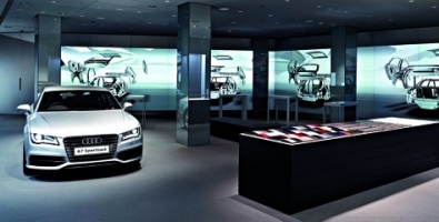 İngiltere’nin başkenti Londra’nın en işlek bölgelerinden Picadilly Caddesi’nde açılan Audi City, geleneksel Showroom ile dijital Showroom’un birleşmesinden oluşuyor. Gerçek araçların yerine birebir araç boyutlarındaki ekranlarda, tüm Audi modellerinin sanal versiyonlarının sergilendiği Audi City’de, geleneksel Showroom’da olduğu gibi satış temsilcileri de bulunuyor. Yani, isteyenler, Audi dünyasının yüz milyonlarca versiyonu arasında oluşturdukları Audi modelini önce sanal dünyada görüp, daha sonra da satın alabiliyor.
