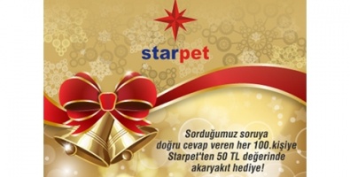 Akaryakıt sektörünün önde gelen markalarından Starpet, kazandıran Facebook uygulamalarına yılın son günlerinde de devam ediyor. 4 Ocak 2013’e kadar sürecek Katıl Kazan uygulamasında, Starpet’in Facebook sayfasındaki soruya doğru yanıt veren her 100’üncü kişi, 50 TL değerinde akaryakıt kazanıyor.