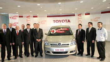 Toyota, 1 Aralık 2005 tarihinde Adapazarı’ndaki fabrikasında 500.000. aracı üretmesini kutladı. 500.000. araç olarak Verso modelinin hattan çıktığı törene hükümet temsilcileri, yerel otoriteler, yansanayiciler ve Toyota’nın Japonya ve Avrupa’dan üst düzey yöneticileri katıldı. Otomotiv sektöründe 2004 yılının ihracat lideri olan Toyota Türkiye, yılda 150.000 adet üretim kapasitesi ile Corolla Verso, Sedan ve Wagon modellerinin üretimini sürdürüyor. 3500 çalışanı bulunan Toyota Türkiye’nin şu ana kadar yaptığı yatırım miktarı 730 Milyon Euro’dur..